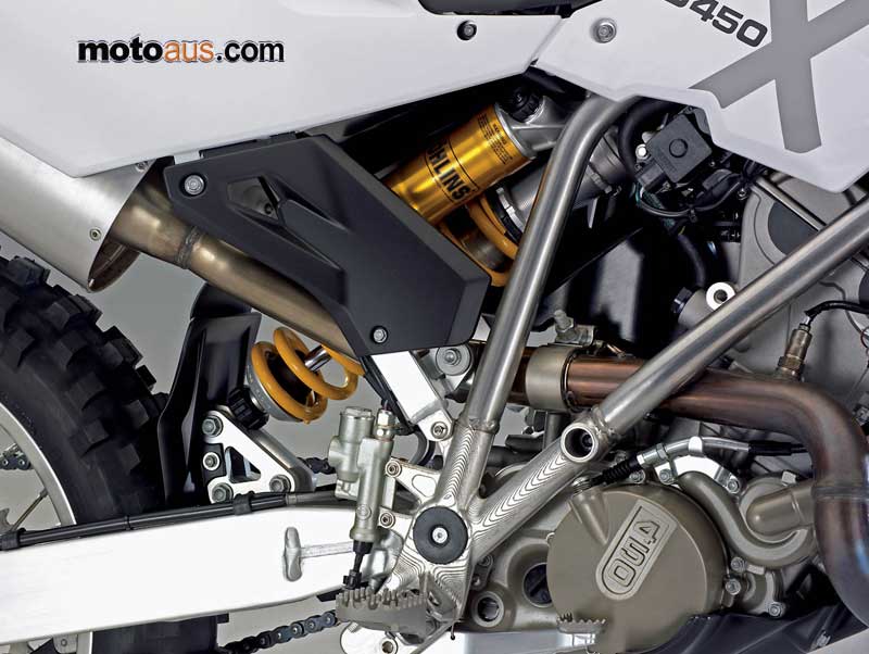 The frame layout is based on the experiences of the development engineers, the know-how from competitive racing and attendant research and development work. The knowledge gained from earlier rally sport activities was also incorporated. The frame of the BMW G 450 X is an absolutely new development that differs in principle from all constructions of the competition.