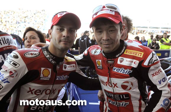 Noriyuki Haga has bounced back from his bird induced crash in Race 2 at Monza, with a pidgeon pair of wins at Kyalami, with the Japanese star now leading the championship by 85pts on his factory Ducati. Haga defeated teammate Michel Fabrizio in both 24-lap races,while championship rival Ben Spies manage a 3rd in race one, and a mechanical DNF in the second.