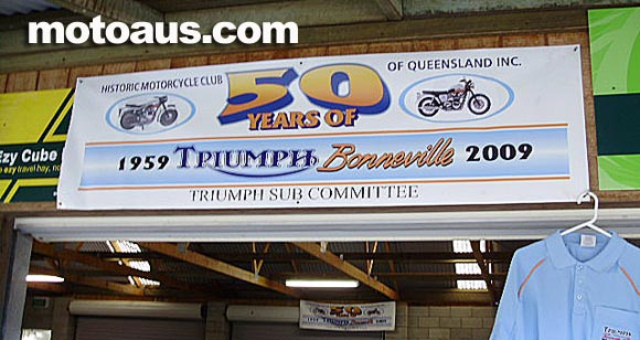 A rally commemorating the 50th Anniversary of the Triumph Bonneville was held on the 16-17th of May 2009 by the Historic Motor Cycle Club of Queensland in Dayboro Queensland.