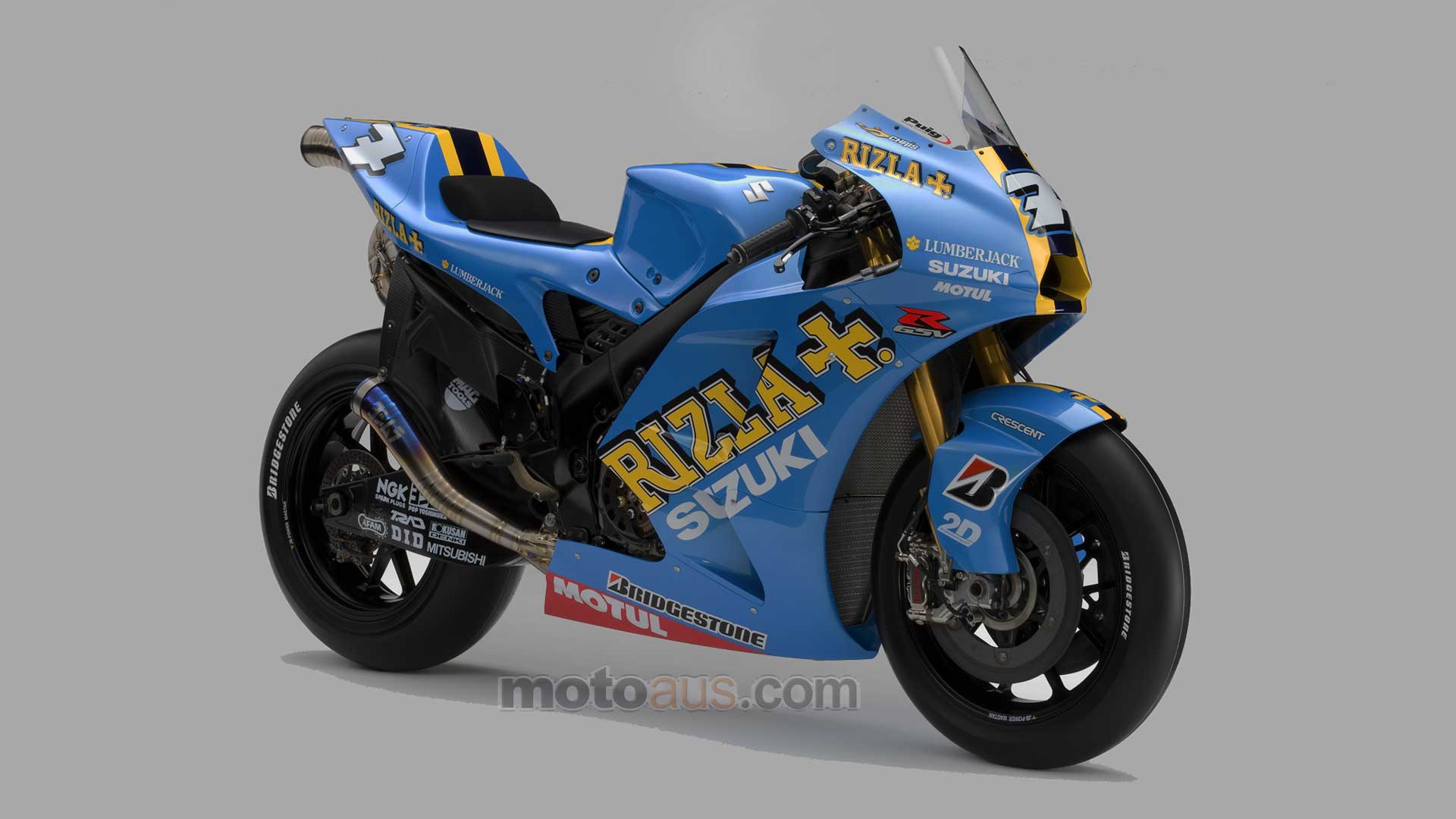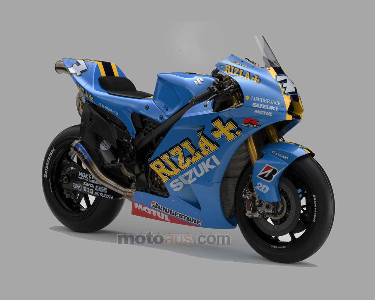 A range of sizes of images from Suzuki for the 2008 Rizla Suzuki GSVR MotoGP machine, to be raced in the 2008 MotoGP World Championship ridden by Chris Vermuelen and Loris Capirossi. 5 image sizes including 3 widescreen up to 1920 pixels wide.