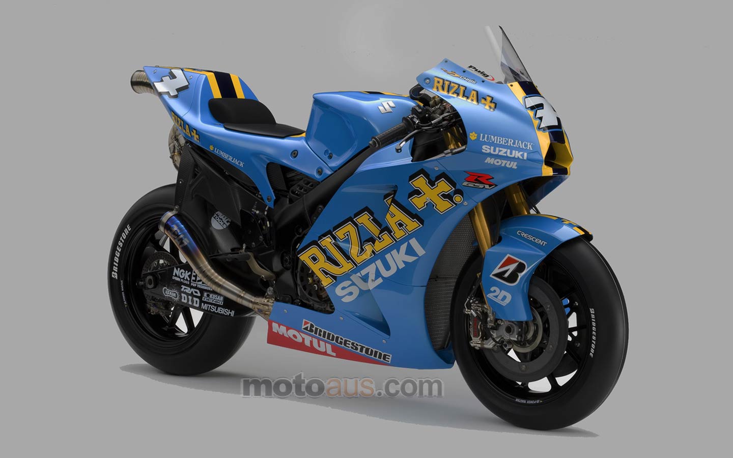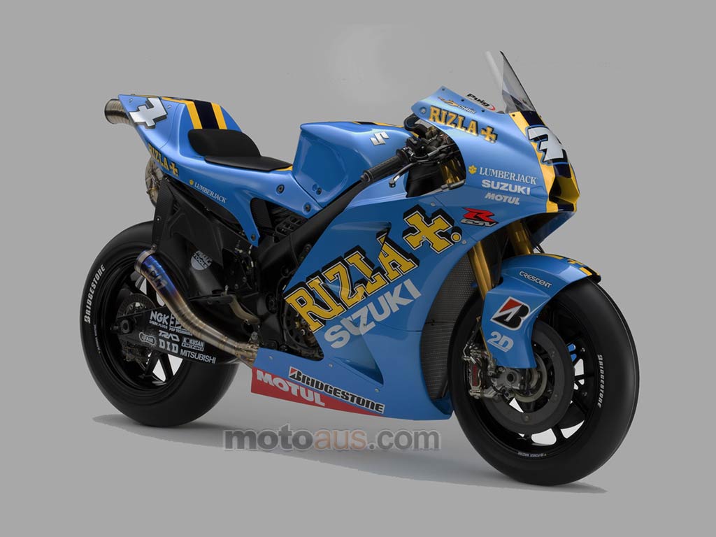 Rizla Wallpaper GSVRA range of sizes of images from Suzuki for the 2008 Rizla Suzuki GSVR MotoGP machine, to be raced in the 2008 MotoGP World Championship ridden by Chris Vermuelen and Loris Capirossi. 5 images sizes including 3 widescreen up to 1920×1020 pixels .